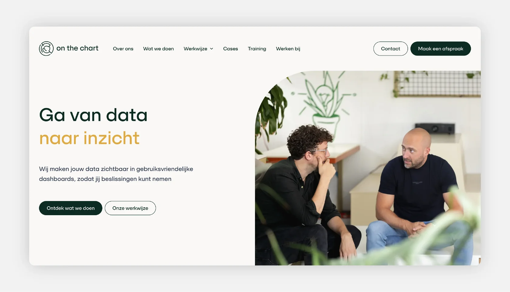 On The Chart is a Netherlands-based data consultancy helping organisations transform raw data into meaningful insight. Their website outlines how they guide clients from analysis to implementation—through workshops, dashboards, and long-term support. The visual language pairs approachable illustrations with practical messaging to communicate expertise without overwhelming the user.
